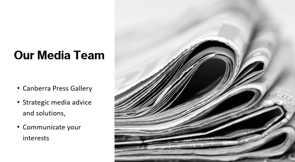 Our media team at Watson Advisory is led by Darrin Barnett, a former Press Secretary to the Prime Minister and Canberra Press Gallery Journalist with over 20 years of experience in media, state, and federal politics. Our broader internal and external media team is committed to providing strategic media advice and solutions, ensuring that our clients’ messages are effectively communicated and their interests are well-represented.